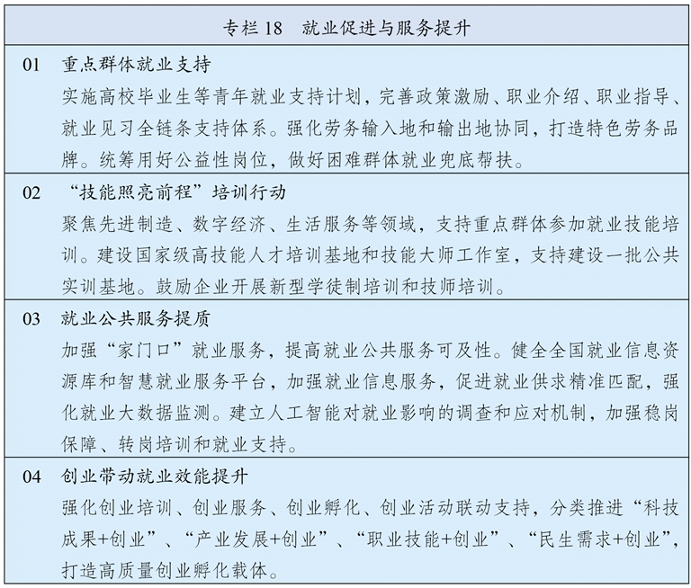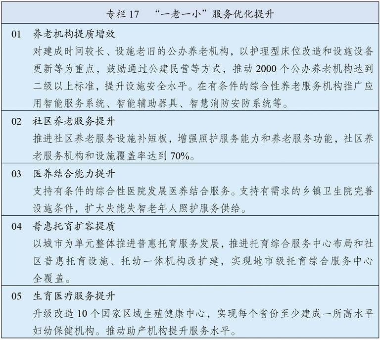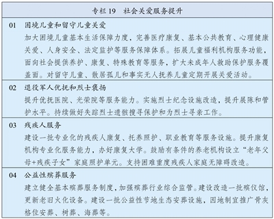完善残疾人社会保障制度和关爱服务体系,促进残疾人事业全面发展。强化对重度残疾、多重残疾、一户多残等群体兜底保障,健全困难残疾人生活补贴、重度残疾人护理补贴制度及补贴标准动态调整机制,加强残疾儿童康复救助,健全残疾人辅助器具适配补贴制度。完善残疾人社区和家庭支持,加强重度残疾人托养照护,发展精神障碍社区康复。强化残疾人就业帮扶,完善按比例就业、集中就业、自主就业促进机制。发展残疾人文化体育。深入推进科技助残,加强公共设施、信息交流、社会服务无障碍环境建设。