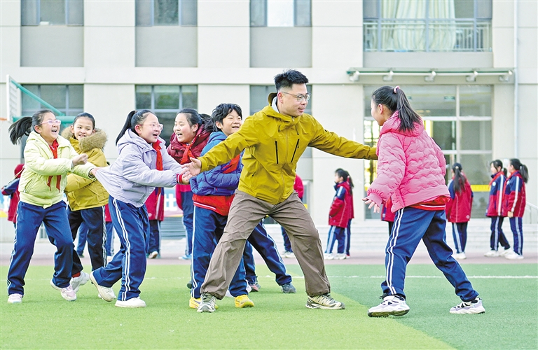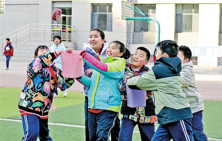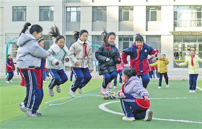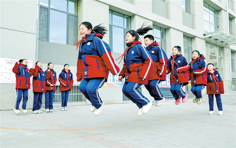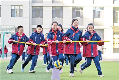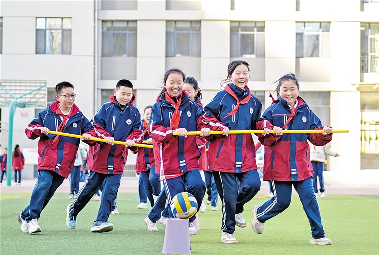春和景明,活力迸发。课间时间,呼和浩特市玉泉区石东路小学的操场上充满欢声笑语,跳绳、打篮球、拔河、开展“老鹰抓小鸡”等趣味游戏……孩子们在追逐嬉戏中释放天性,在协作互助中收获快乐,成为春日校园里一道明媚的风景线。“太开心了!每天课间和同学们痛痛快快地玩一会,浑身都是劲儿!”“课间跑一跑、跳一跳,头脑更清醒了,学习起来更有精神了!”孩子们擦着额头上的汗珠感慨着。日前,教育部印发《关于全面推进健康学校建设的指导意见》,提出健康学校建设的8项重点任务。其中第一项就是加强学校体育工作。全面实施学生体质强健计划,落实中小学生每天综合体育活动时间不低于2小时,推行“课间15分钟”,实施大学生体质提升行动。自春季学期开学以来,呼和浩特市玉泉区石东路小学将晨跑、15分钟课间与阳光大课间有机衔接、统筹安排,确保学生每日综合体育活动时长达到2小时,推动健康校园真正“动起来、活起来、热起来”。据了解,呼和浩特市各中小学校积极贯彻落实指导意见要求,加强学校体育工作,全面实施学生体质强健计划,通过多元化活动项目推动校园体育持续升温,让学生动起来、让心理强起来、让效果立起来,身上有汗、眼里有光,在运动中收获健康、快乐和成长。