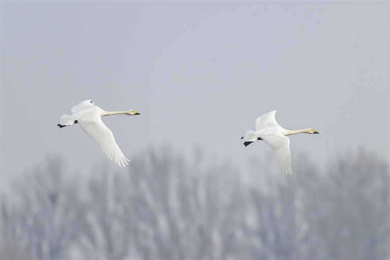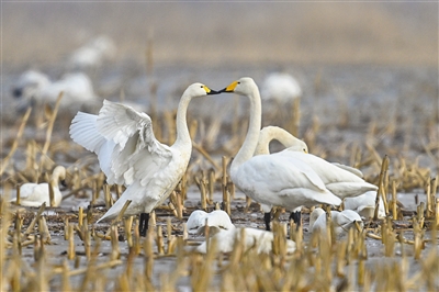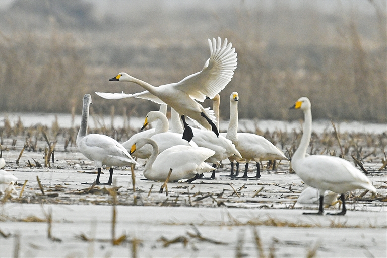 春回大地,万物复苏。包头市土默特右旗境内的黄河湿地迎来了迁徙天鹅,它们栖息觅食、悠闲漫步、振翅起舞,构成一幅生机盎然的生态画卷。