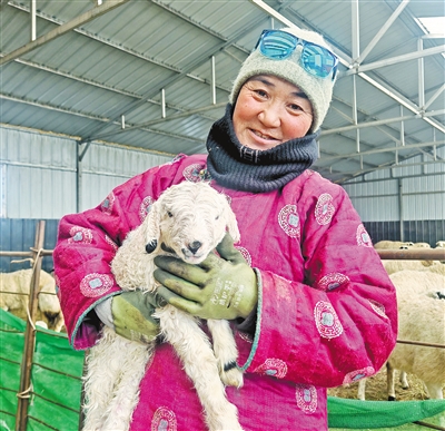 3月23日,在贝尔苏木莫嫩塔拉嘎查,牧民苏都毕力格家的圈舍里,小羊羔接连降生,清脆的“咩咩”声此起彼伏。苏都毕力格和妻子扎拉玛忙碌着接羔助产、清理棚圈、饲喂羊儿……各环节做得细致入微。