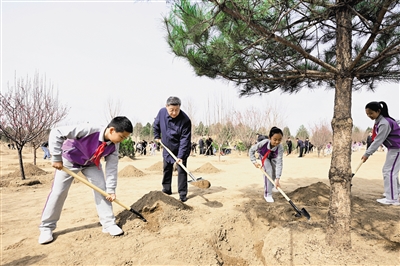 在京中共中央政治局委员、中央书记处书记、国务委员等参加植树活动。