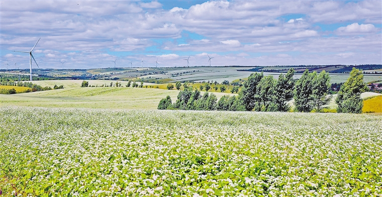 政策上,加大对荞麦种植合作社、龙头企业的扶持力度,推动荞麦种植向规模化、标准化、有机化转型。依托敖汉旗水土保持坡改梯综合治理项目,在牛力皋川建成5000亩旱作高标准农田,将昔日“跑水、跑土、跑肥”的山坡田,变身“保水、保土、保肥”的“三保田”;同时引进赤荞九号、温沙大粒等优质荞麦品种,推广机械化耕种技术,让荞麦亩产不断跃升,从源头上提升产业核心竞争力。2025年,当地还建设了荞麦示范基地,为产业发展奠定了坚实基础。