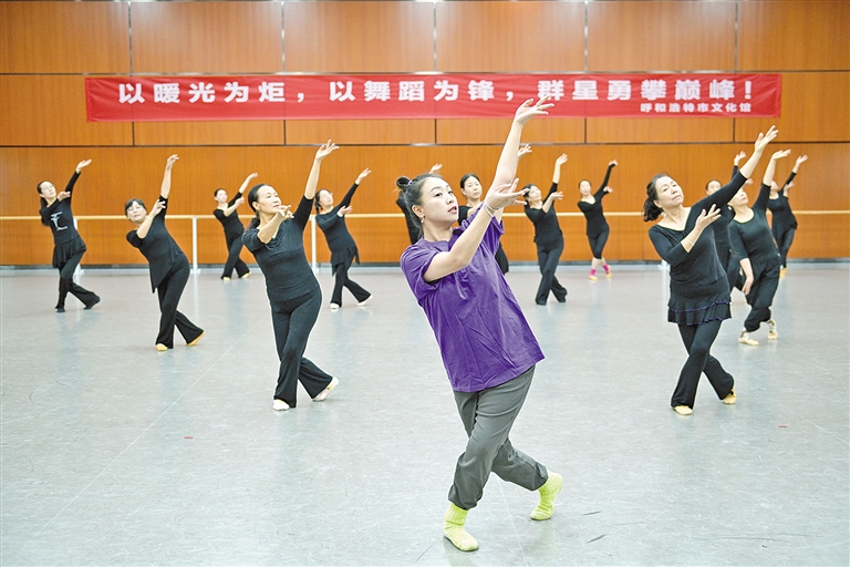 “注意手的动作,步伐再稳一点,眼神跟着手势走……”春日里,在呼和浩特市文化馆舞蹈室内,学员们身姿舒展、精神饱满,跟着老师的节奏精准跑位、利落甩臂、灵巧翻腕,一招一式刚柔并济,尽显灵动韵味。