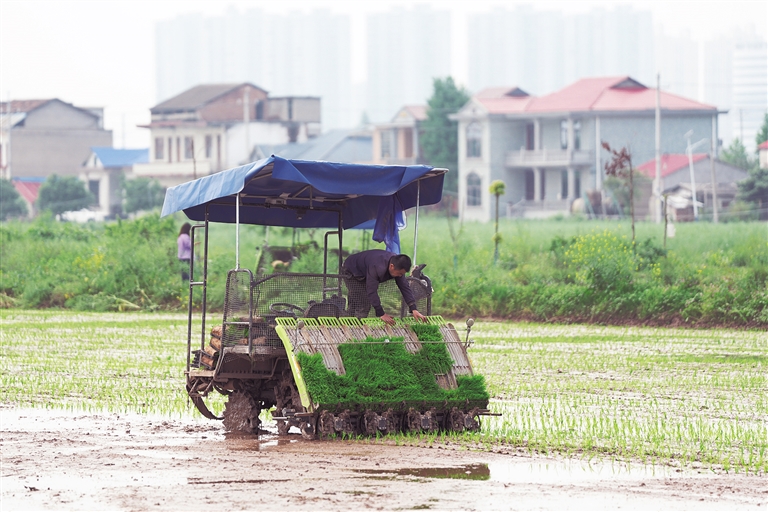 4月16日,在湖南省益阳市南县南洲镇,无人驾驶插秧机在田间作业。近期,湖南洞庭湖畔多地陆续开启早稻插秧。在益阳市南县南洲镇,多台无人驾驶插秧机在田间穿梭作业。这些无人驾驶插秧机具备实时定位与路径规划能力,能够节省人工劳力,使插秧作业更加规范、高效,便于田间管护。 新华社记者 陈振海 摄