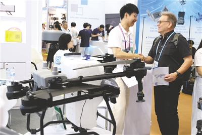 4月15日,外商在广交会现场参观洽谈。第139届中国进出口商品交易会(广交会)4月15日在广州开幕。在本届广交会上,各类无人机展品备受关注。从摄影“天眼”到应急装备、巡检神器,新技术、新场景涌现,展现出我国低空经济的创新实力。 新华社记者 卢汉欣 摄