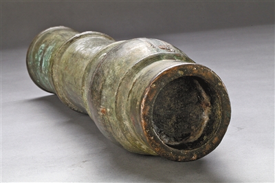 火药是中国古代四大发明之一,管形火器将火药推到更高的位置。在乌兰察布市博物馆“辽——清的乌兰察布”展厅陈列着一件制造于明代永乐年间的铜火铳,口径10厘米,内径7.5厘米,总长度49厘米,重17.7公斤,尾銎(qióng)长5厘米,药室长12厘米,前膛长32厘米。