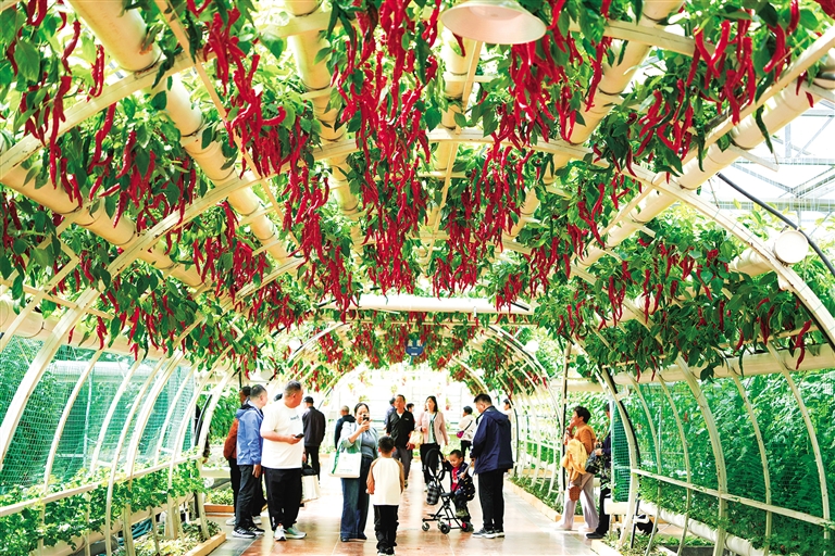 4月20日,人们在蔬菜科技博览会上参观。4月20日,第二十七届中国(寿光)国际蔬菜科技博览会在山东潍坊寿光市蔬菜高科技示范园开幕。本届博览会以“绿色·科技·未来”为主题,集中展示国内外优质蔬菜品种、种植新模式与核心新技术。博览会将持续至5月30日。