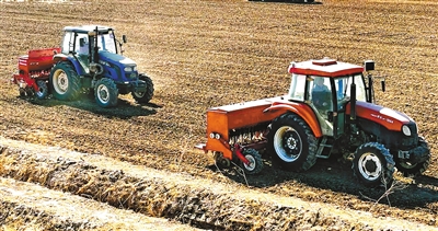 走进巴彦淖尔市杭锦后旗二道桥镇太阳升村高标准农田,播种机轰鸣作业,智能喷灌机匀速运转。